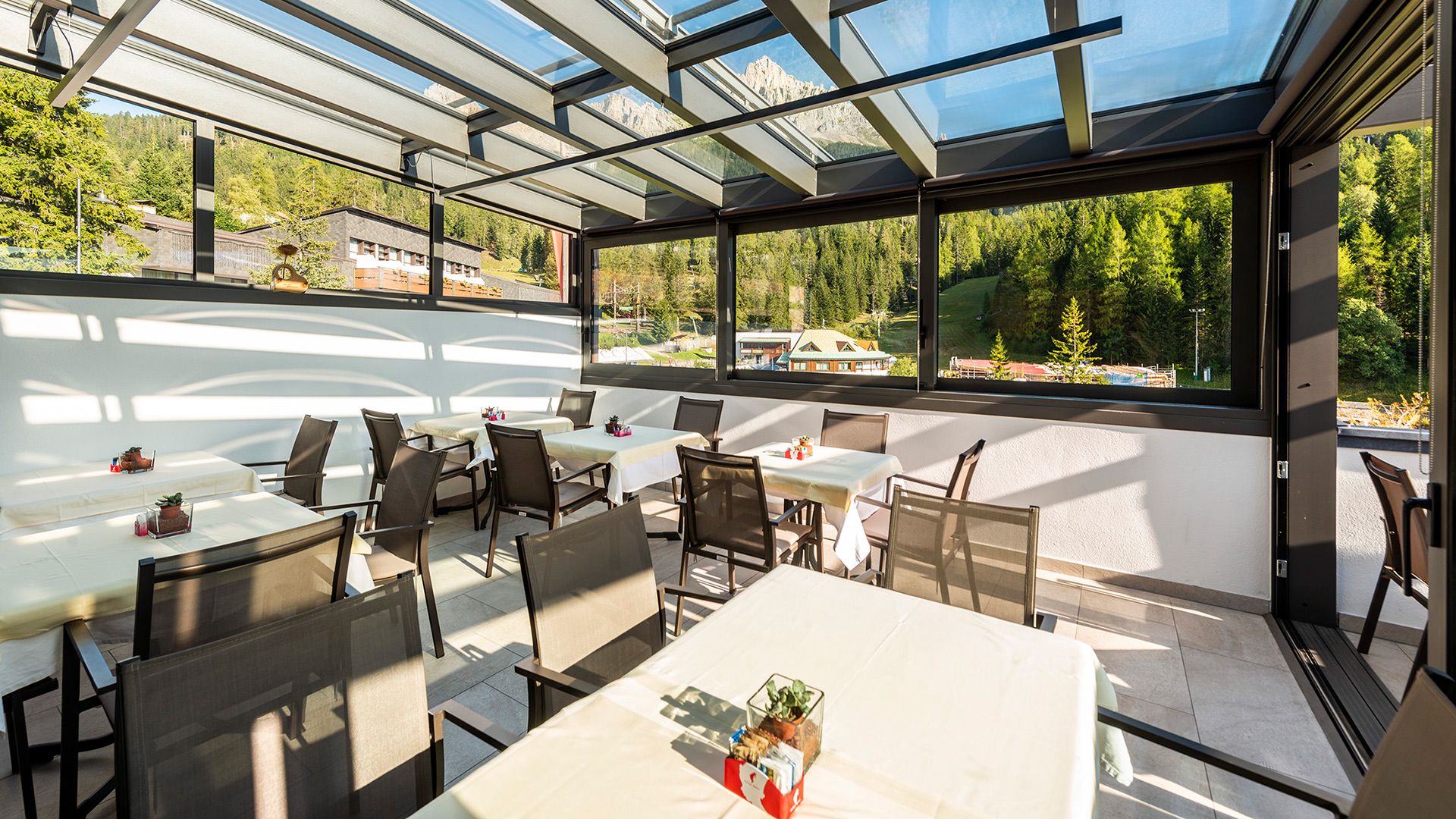 Bei unseren Gästen besonders beliebt: unser 2018 mit Glas überdachter und umgestalteter Wintergarten.