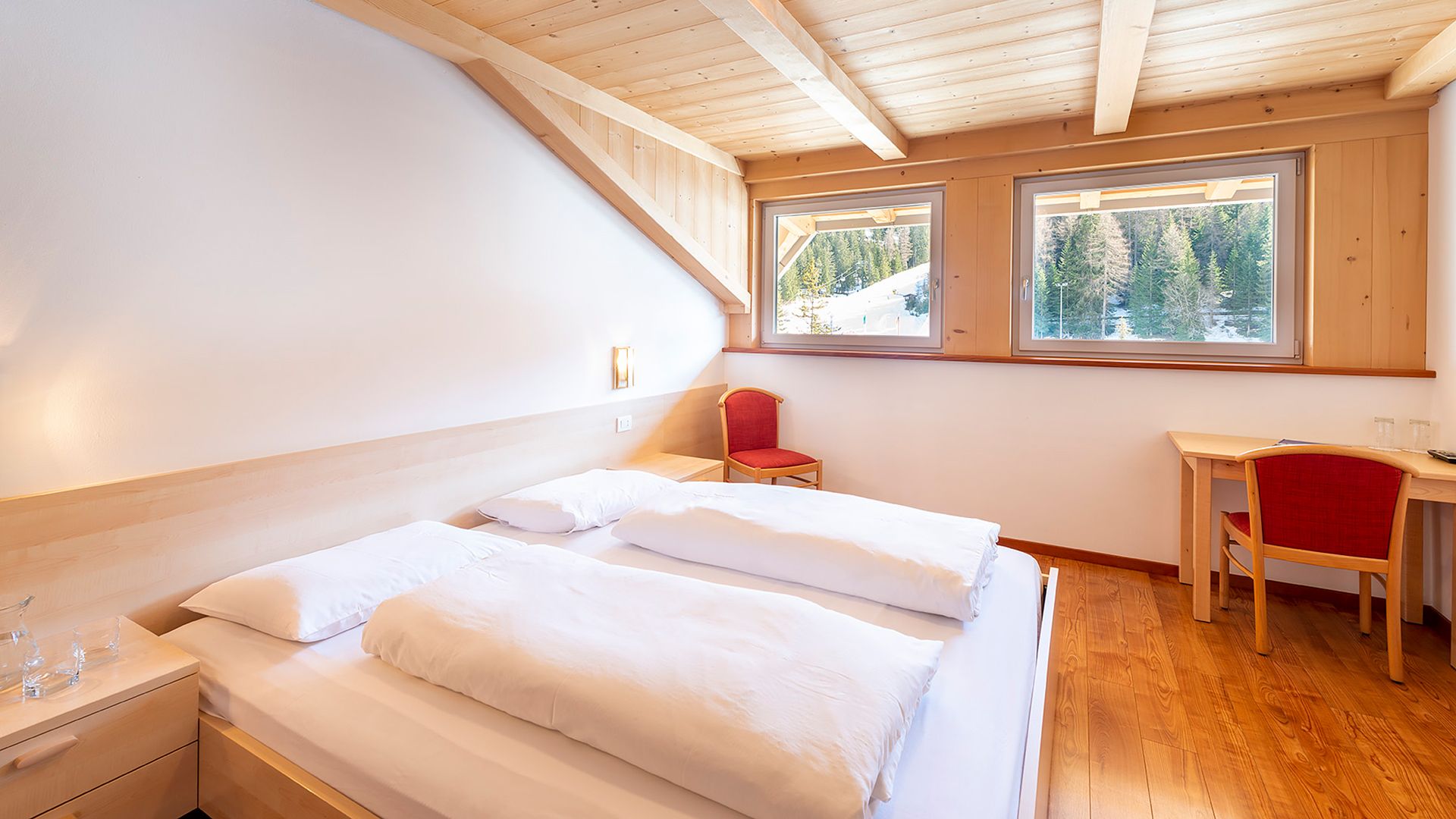 Ein weiteres Gästezimmer liegt Richtung Osten, dort gibt es keinen Balkon aber trotzdem können Sie eine wundervolle Aussicht auf die umliegenden grünen Wälder, Wiesen und Skipisten genießen. Das W-Lan können Sie auch in der Dependance kostenlos benützen.